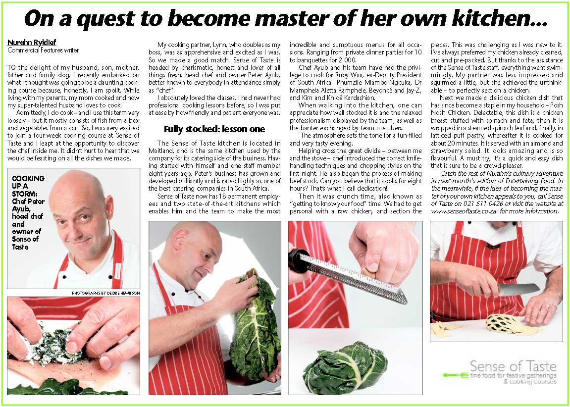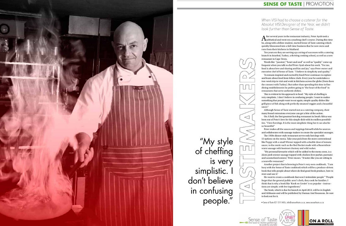 Chef Peter’s food philosophy and what he has to say...“Food is a beautiful part of our daily lives! Apart from the obvious necessity of food needed to survive. Food embodies celebration and bringing people together. For Life For Living For the Joy of Cooking is my tag line which aptly describes my incredible food journey of 25 years and my absolute passion for food! Good food is about the love of cooking, it about the time taken to decide what you want to cook, it is about been aware of your seasons, enjoy shopping for fresh and local ingredients and finally sitting down and savouring that dish and sharing it with family and friends. In a nutshell Good Food is about the care and love of food 365 days a year!”