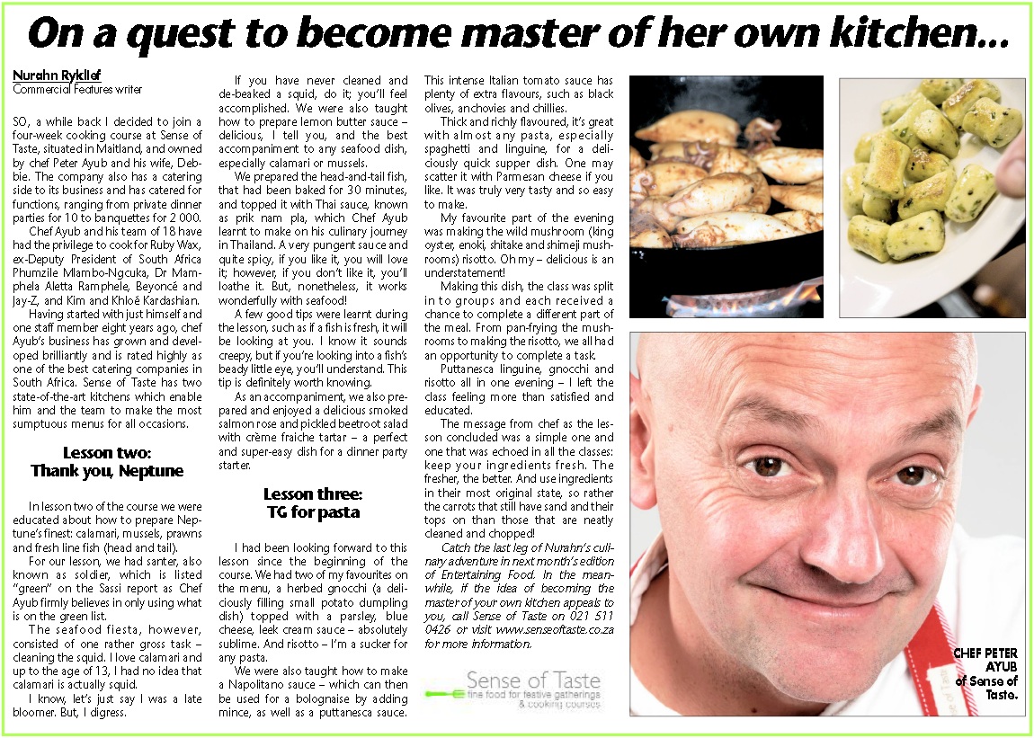 Chef Peter’s food philosophy and what he has to say...“Food is a beautiful part of our daily lives! Apart from the obvious necessity of food needed to survive. Food embodies celebration and bringing people together. For Life For Living For the Joy of Cooking is my tag line which aptly describes my incredible food journey of 25 years and my absolute passion for food! Good food is about the love of cooking, it about the time taken to decide what you want to cook, it is about been aware of your seasons, enjoy shopping for fresh and local ingredients and finally sitting down and savouring that dish and sharing it with family and friends. In a nutshell Good Food is about the care and love of food 365 days a year!”